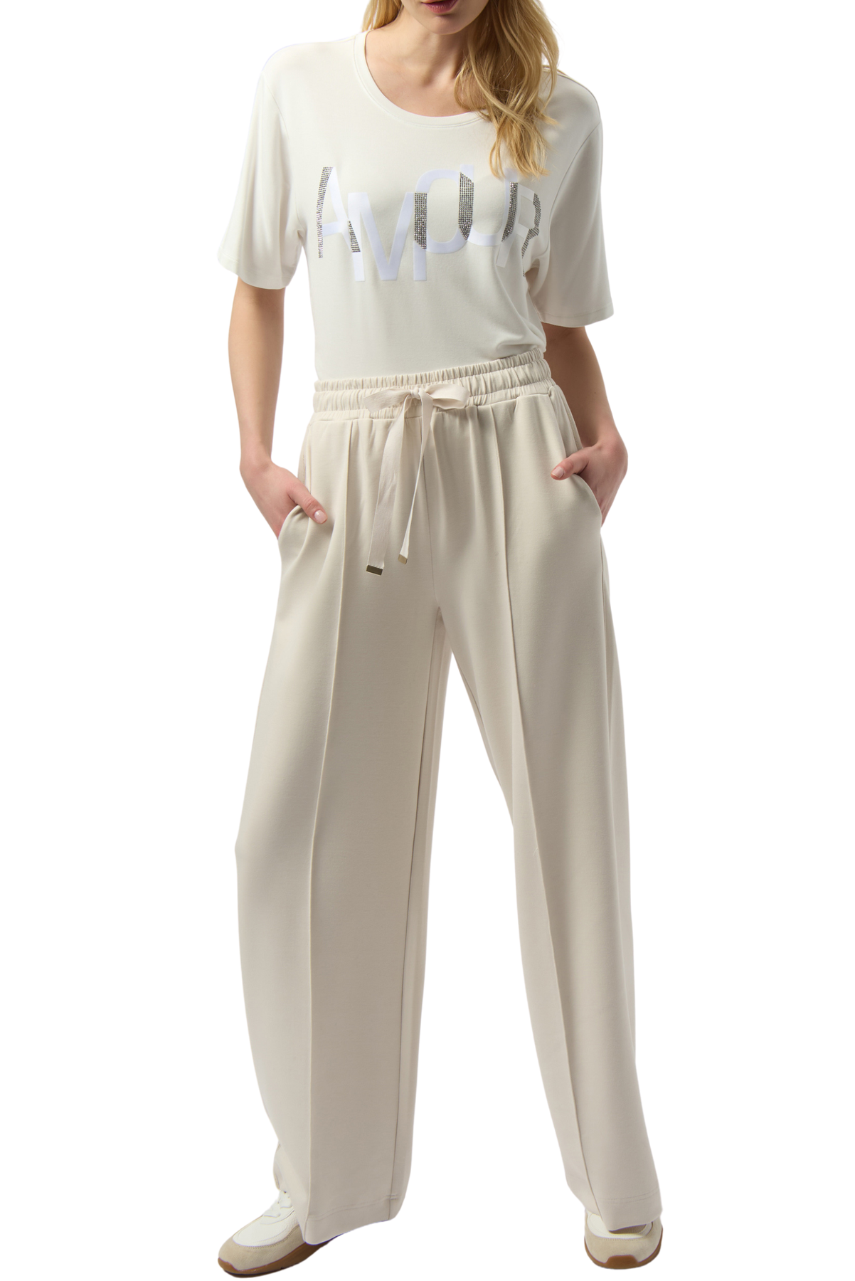 Add a touch of sparkle and romance to your everyday wardrobe with this three-quarter sleeve t-shirt, elegantly adorned with the word "amour" in shimmering rhinestones.