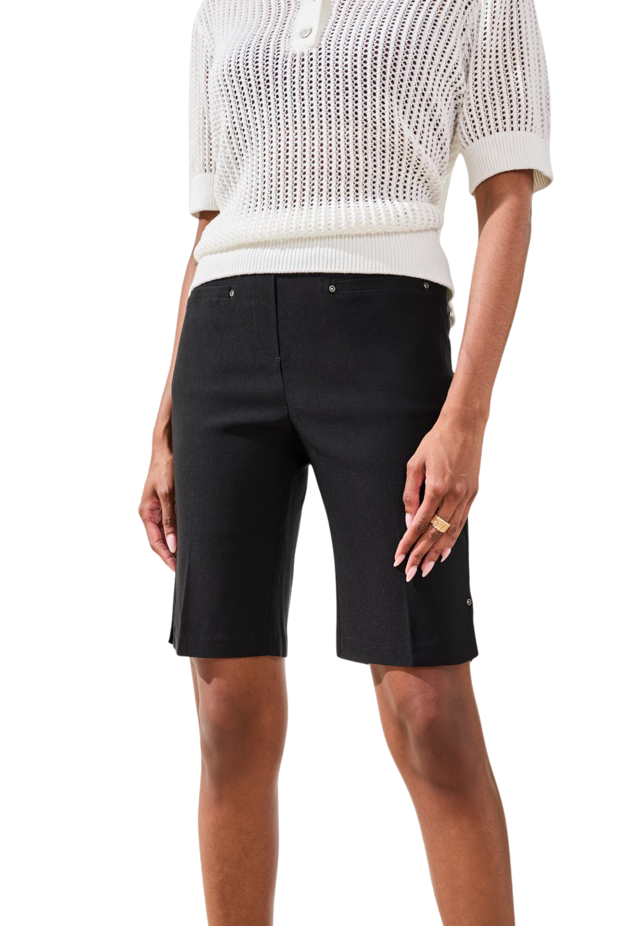 A streamlined shape and smooth pull-on waistband define these slim shorts in stretch century twill. The polished finish and flexible fit provide easy movement for everything from morning walks to weekend getaways or spring errands.