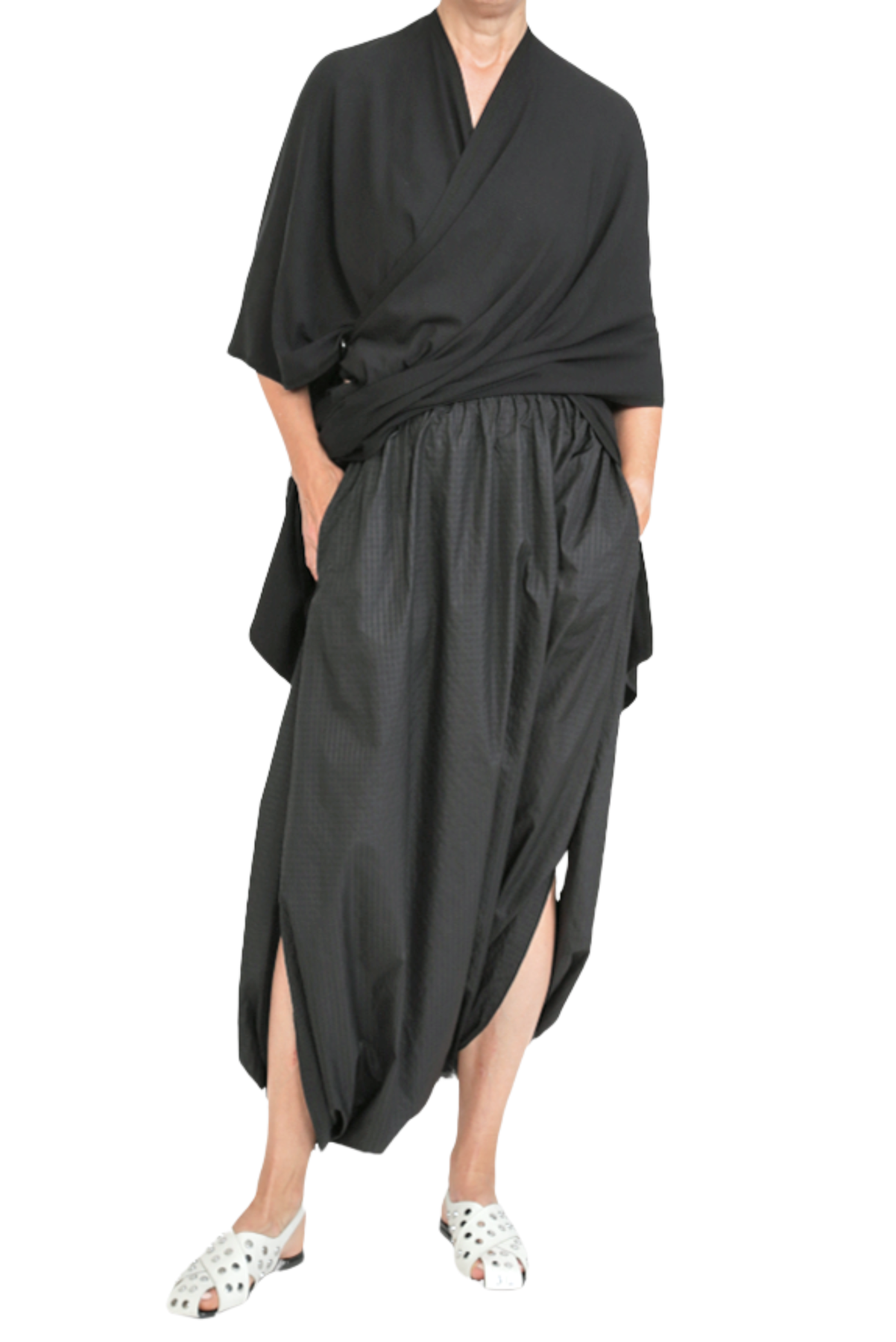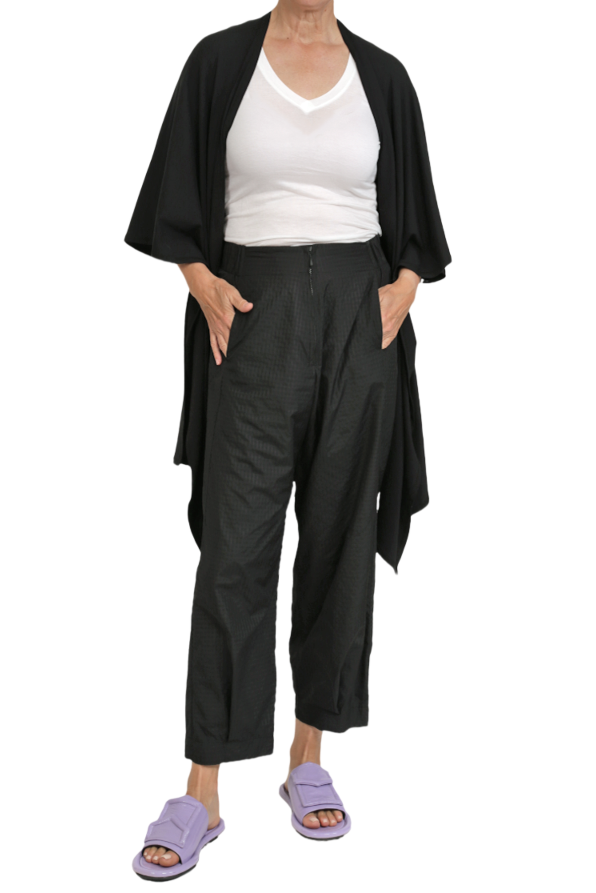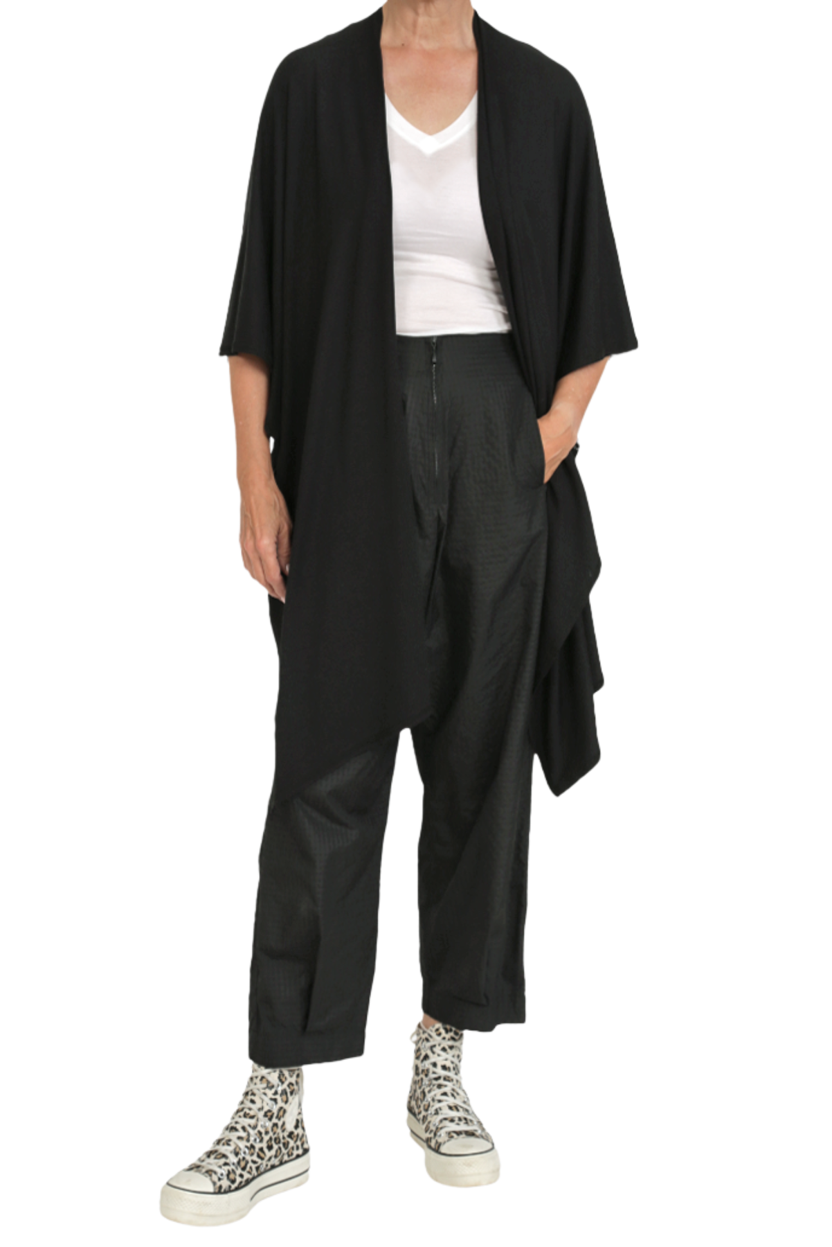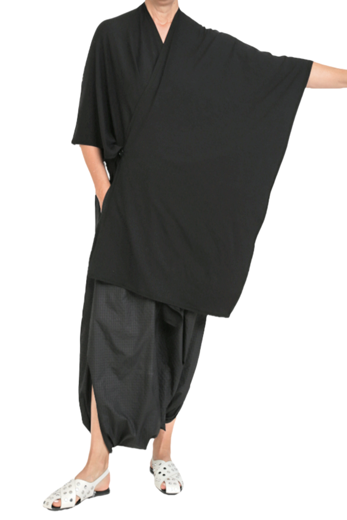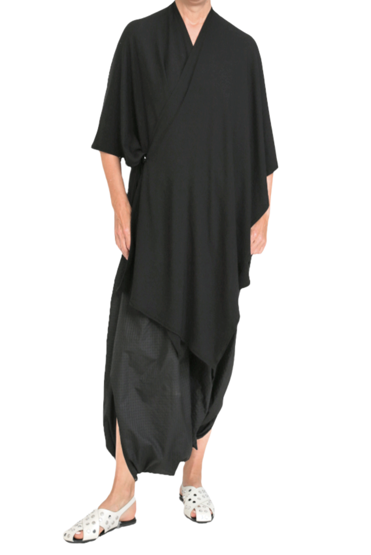 An updated version of the Halo wrap!  Buttons for multi-function.  Wear as tunic, vest, wrap, or scarf.  Reverse stitching detail.