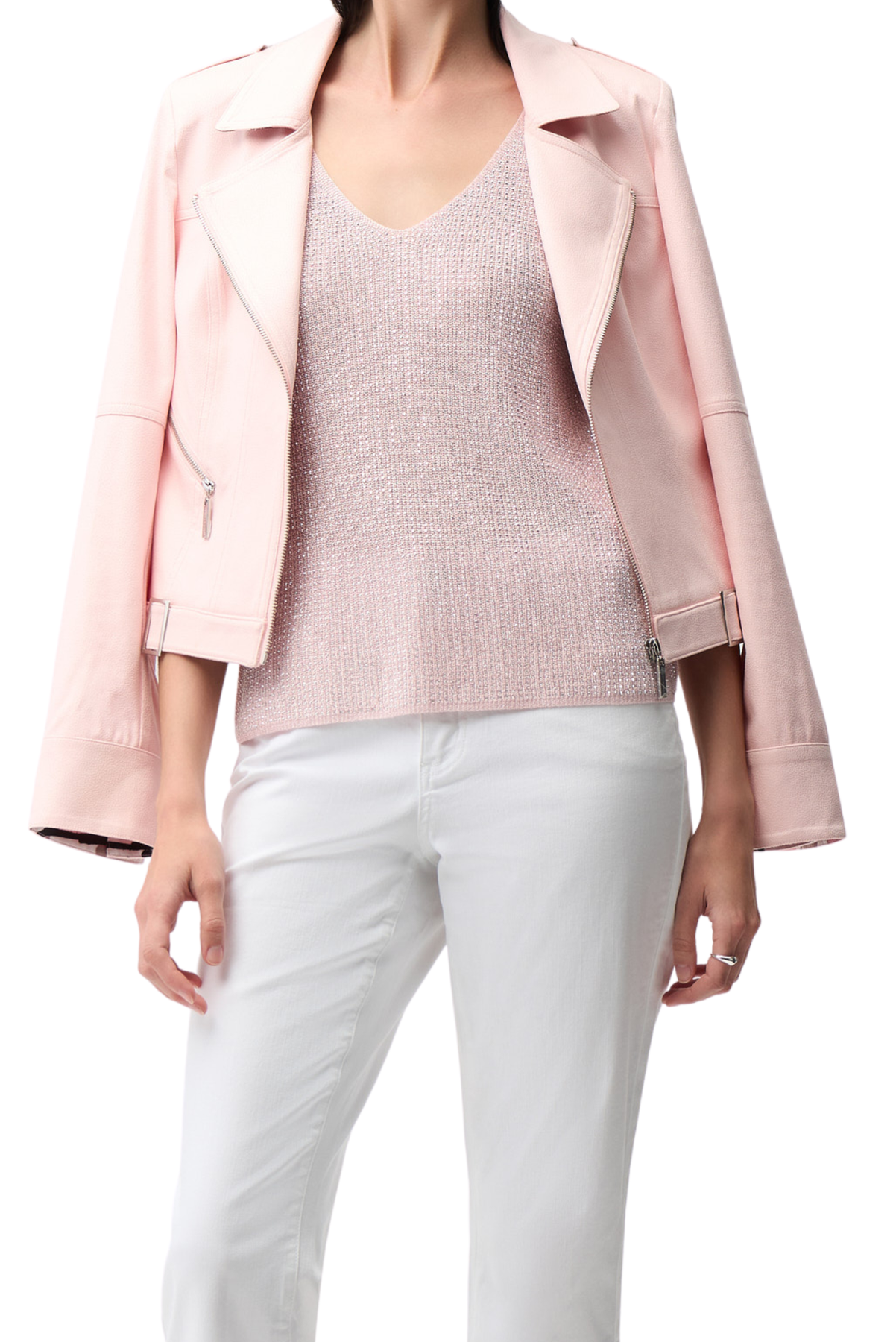Get ready to dazzle at your next event in this sleeveless camisole. Crafted from a ribbed sweater knit blended with shimmering metallic fibers, it’s designed to catch the light and all the attention. The flattering V-neckline in both the front and back, paired with iron-on detailing, makes this top perfect for any party or night out.