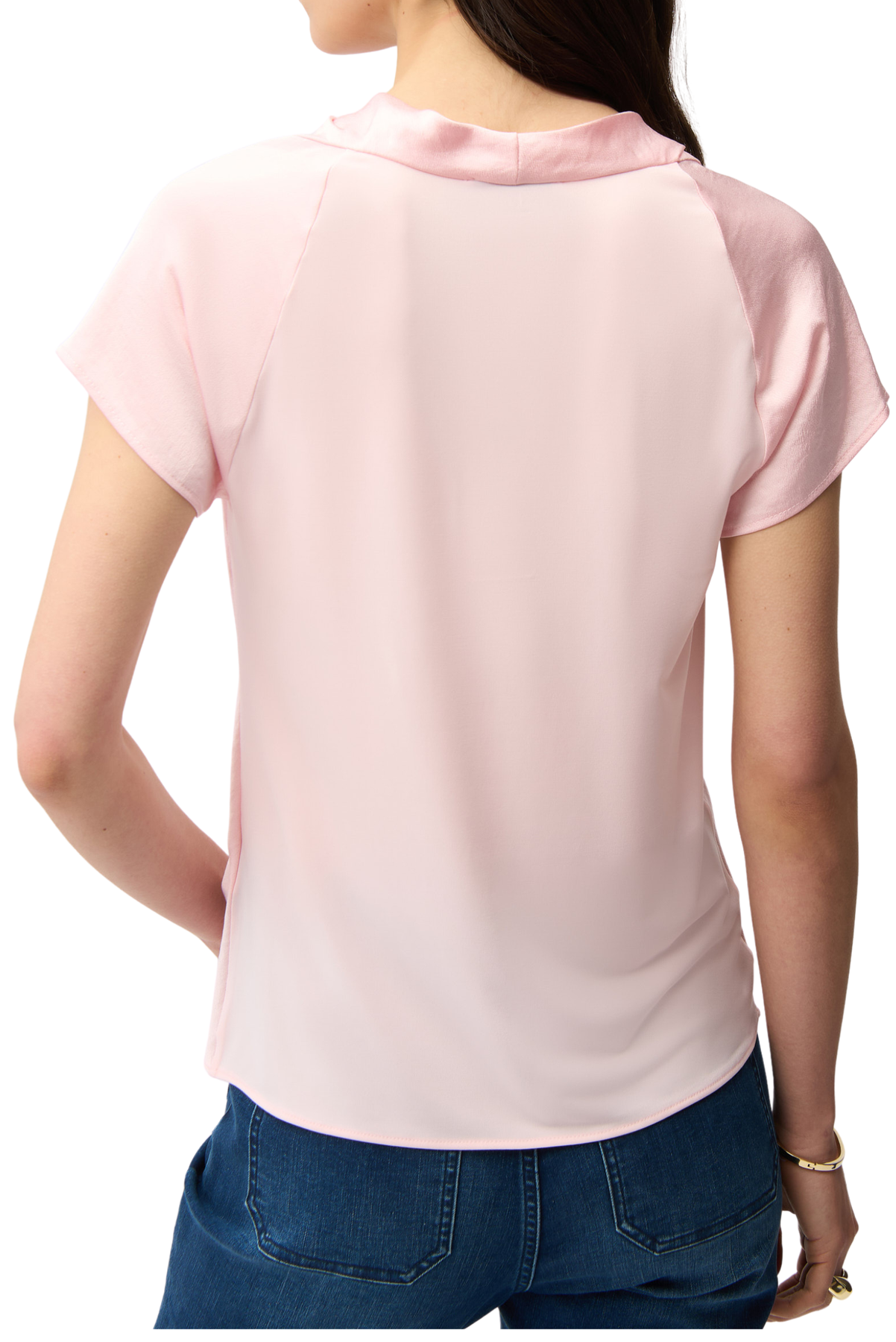 Elegant with a relaxed drape, this straight top combines recycled hammered satin with silky knit. Finished with a soft cowl neckline and short raglan sleeves, it brings ease to elevated styling.