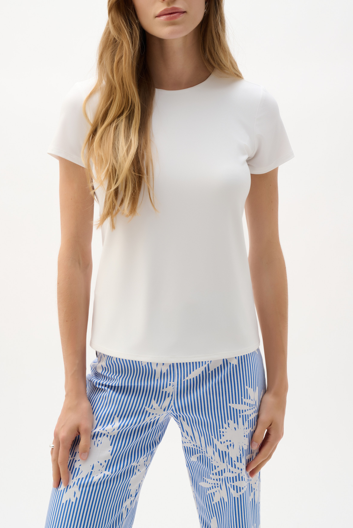 A crew neckline and short sleeves give this silky knit fitted T-shirt a clean, versatile look. Fully doubled at the front and back, it provides subtle structure and a polished finish that elevates an everyday essential.