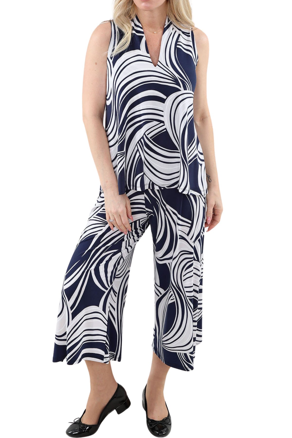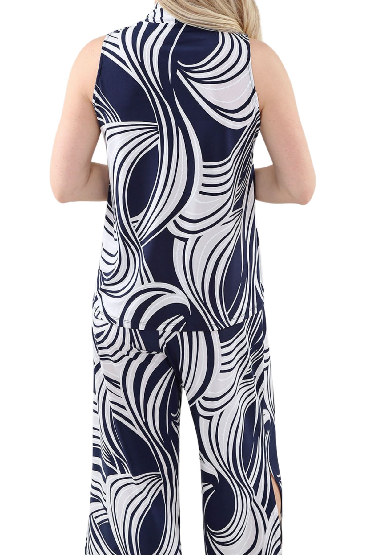 This sleeveless top features a flattering V-neckline and a double-front design for a smooth, polished look. The navy sand print adds subtle interest while staying easy to style. Lightweight and comfortable, itβs perfect for warm days or layering under jackets and cardigans for effortless everyday wear.