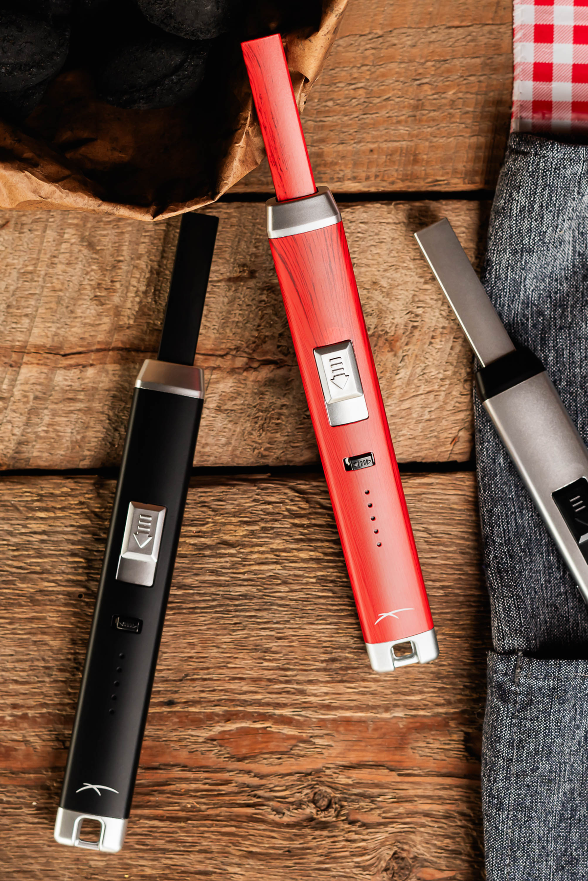The Sizzle Pitmaster is engineered as an all-purpose lighter for indoor/outdoor use. Easily ignite fire pits, lanterns, torches, tealights and candles. Create your own illuminating environment. USB charge cord included.