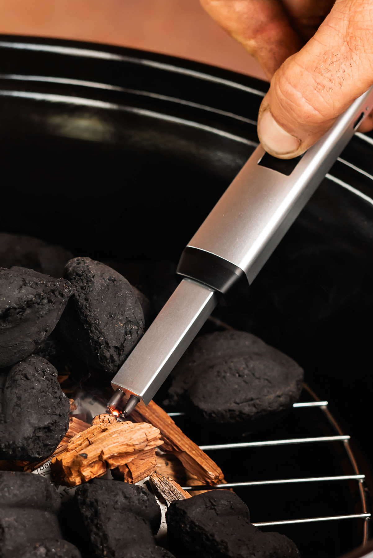 The Sizzle Pitmaster is a USB rechargeable plasma arc lighter, offering longevity and reliability. The long-lasting lithium-ion battery can generate up to 300 ignitions on a single charge. The average lifespan of the battery is approximately 100-200 re-charges. The LED display allows you to gauge its power level with frequent usage. Charge the lighter from any USB device or USB adapter.